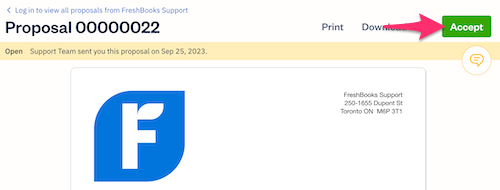 When you send a proposal to your client, they receive an email with a link to the proposal and a button to accept the proposal. Only the primary client can accept a proposal when viewing the proposal: