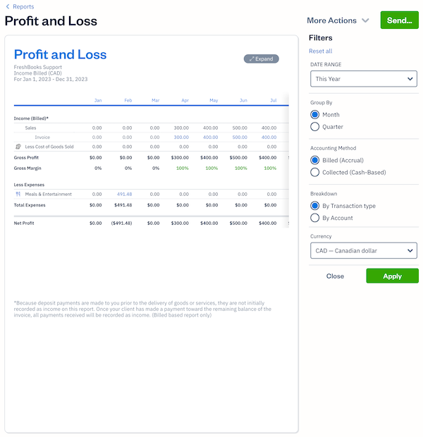 Breakdown - Only available with Accounting on Plus, Premium and Select plans, run the Profit and Loss Report either in By Transaction Type or By Account