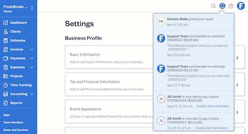 - Invoice is Overdue - [Client] is now late to pay invoice [number] ([amount]). Enable late reminders