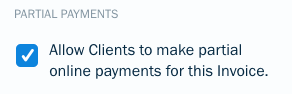 - If you want your clients to be able to pay the invoice partially with credit cards, bank transfers, and/or payment schedules activated, check off Allow Clients to make partial online payments for this invoice