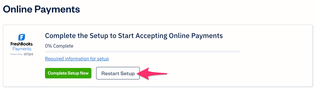 Set up your FreshBooks Payments account in your Online Payments settings with the below steps:
