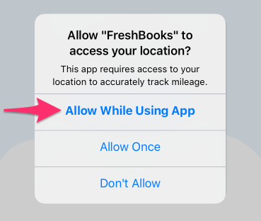 - A pop-up will ask, Allow "FreshBooks” to access your location?, select Allow While Using App